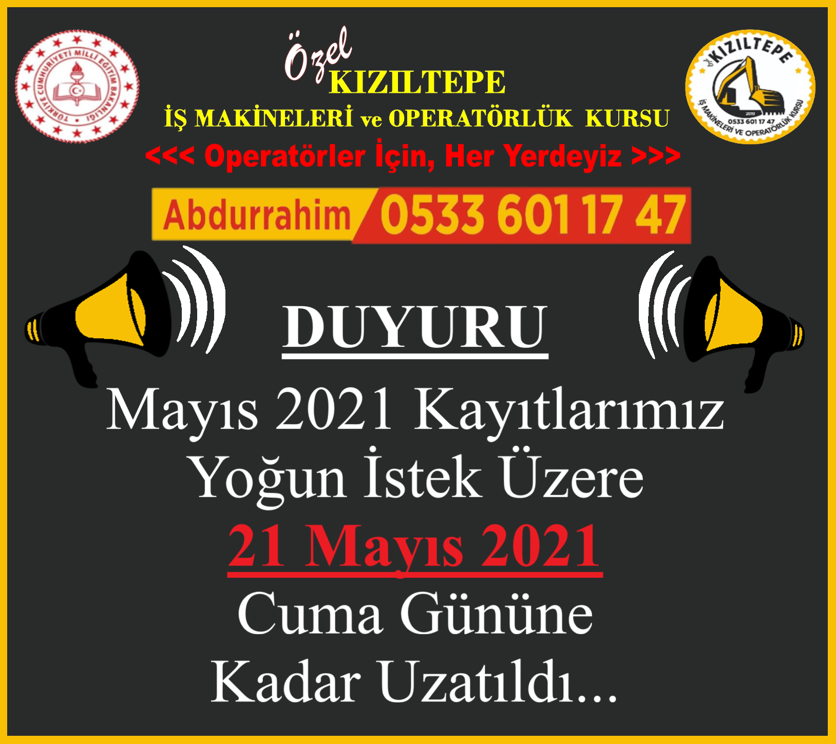 KURS KAYITLARTIMIZ 21 MAYIS 2021 TARİHİNE KADAR UZATILMIŞTIR.